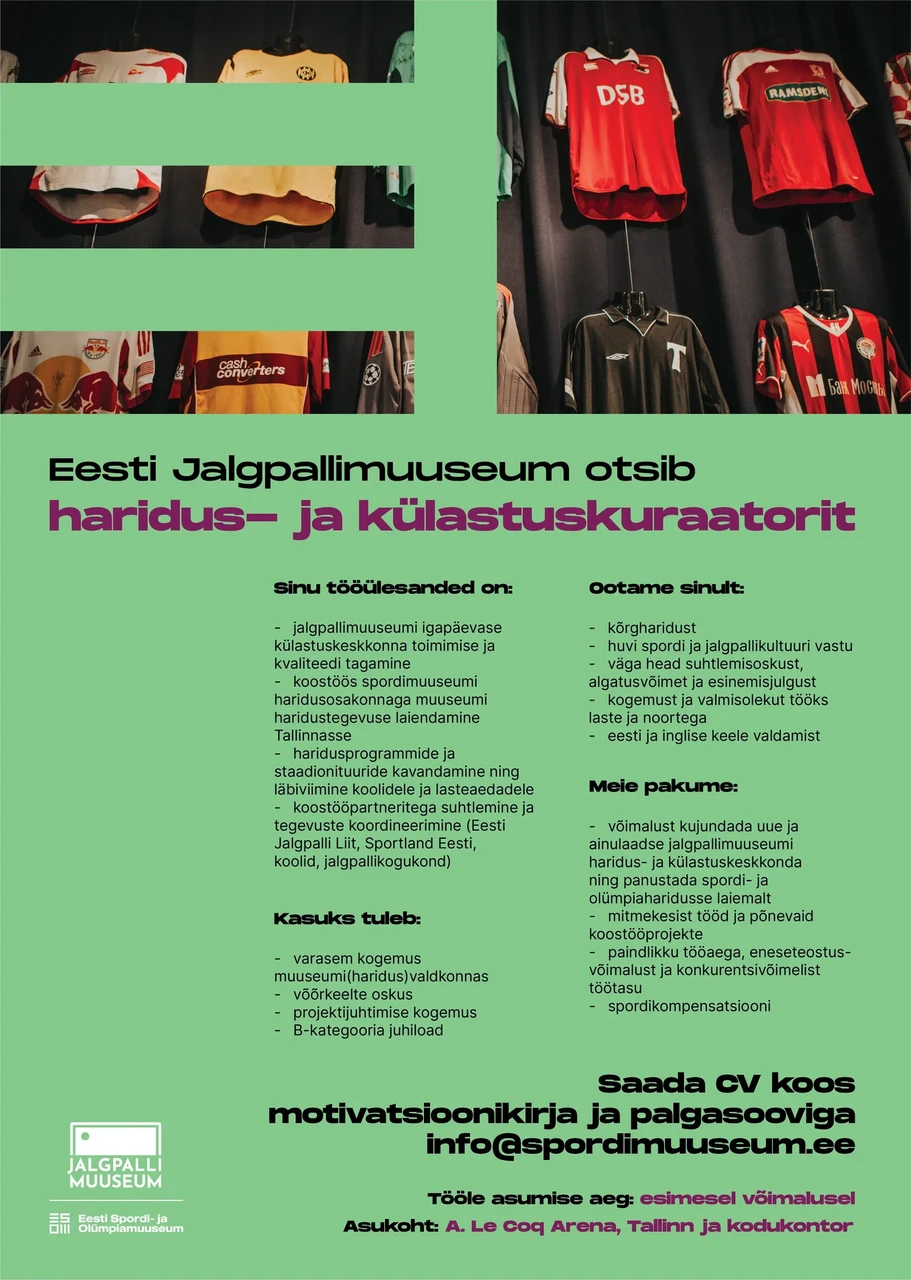 Tule Eesti Jalgpallimuuseumisse haridus- ja külastuskuraatoriks