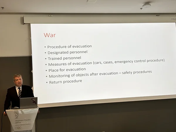 Väga huvitava ettekande tegi ka Patricia Reymond Olümpia Muuseumist, kes rääkis hapnikuvabast hoidlasüsteemist ehk kuidas säilitada pikaajaliselt ebastabiilseid plastesemeid. Ning maailmas toimuvaid ärevaid sündmusi arvesse võttes rääkis Poola muuseumijuht muuseumi kogudega seotud turvaprobleemidest. Iseäranis tõi ta välja sõjaohtu, mis kahjuks on ka Eesti muuseumimaastikul viimastel aastatel üks ärevamaks tegevamaid asju.
