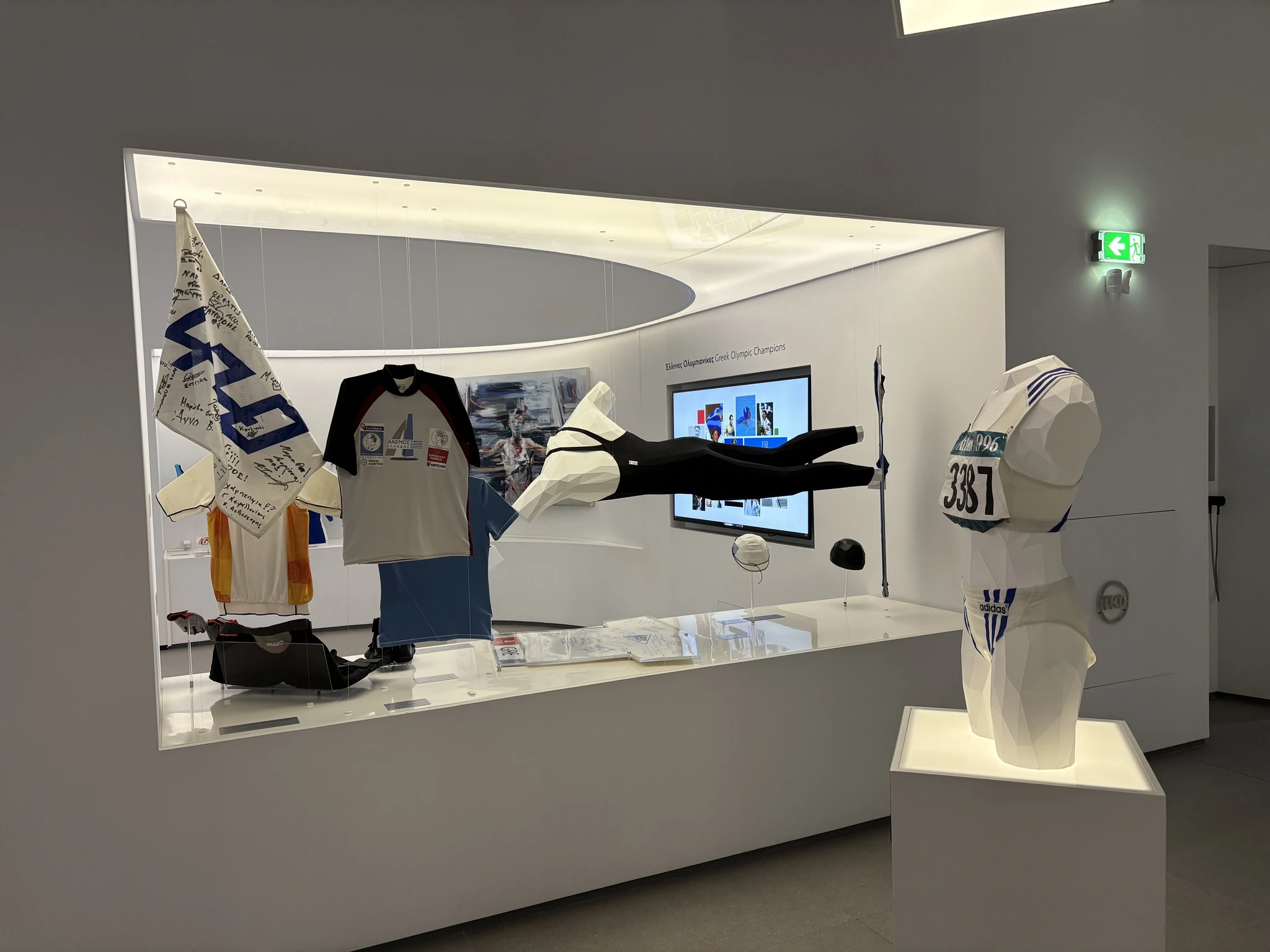 Päeva lõpus avanes meil võimalus külastada Ateena Olümpiamuuseumit, mis avati 2021. aastal. Tegu on väga modernse muuseumiga, kus on mõeldud ka erivajadustega inimeste ligipääsetavusele. Uudne oli näitusel spordiesemete eksponeerimine. Kõik spordivahendid ja -riided olid paigutatud näitusesaali ilma vitriinideta ja riputades, et eset oleks võimalik igast küljest vaadelda. Väärtuslike esemete seisukohast ei pruugi selline eksponeerimisviis muidugi hea lahendus olema (tolm, katsumise oht jms).